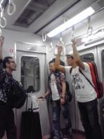 (大量の荷物で大移動の我々。京都の地下鉄にて)