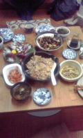 張り切って3合も炊き込みご飯を作り、ボウルいっぱいにひじきと春キャベツのサラダを作り、蕗の煮物を作り、K氏が持って来てくれたテンコ盛りのかつおとタコのお刺身、そしてお味噌汁、キムチ。