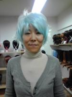 ブルーとグレーの中間くらいの色合いのズラを付けて写真を見たら、「あれ?おばあちゃん??」