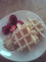 今日は朝からワッフルベーカーで今はやりの『モッフル』を作ってみた。