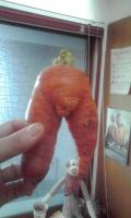 そして、朝!!!さぁ〜人参を丸ごとシリシリしてごまドレッシングで食べようね〜と思って袋から取り出したら、こんな人参くんがぁあああああああ